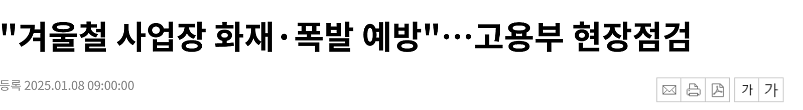 고용노동부는 지난 8일, 제1차 현장점검의 날을 맞아 제조업, 건설업 등에서 겨울철 사고를 예방하기 위한 점검을 실시했습니다.