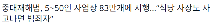 상시 근로자수 5인 이상이라면, 식당, 카페, 미용실, 숙박 시설 등 업종에 관계없이 중대재해처벌법 대상에 포함됩니다.