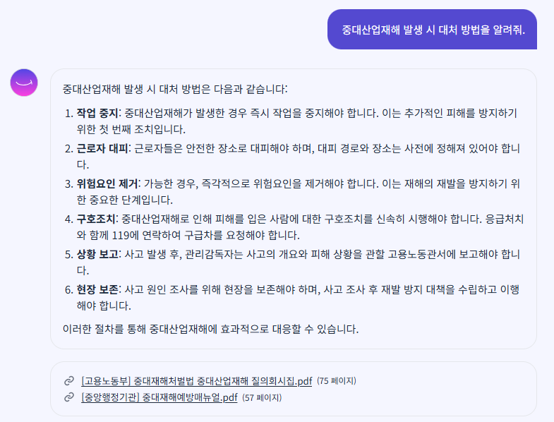 AI 세이프 챗봇이 제공한 중대재해 예방 매뉴얼을 참고하여, 중대재해 발생 시 대응 절차를 정리했습니다.
